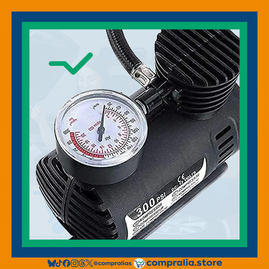 Inflador de Neumáticos Portátil 300 PSI | Compacto y Práctico | Para Carro, Moto y Bicicleta