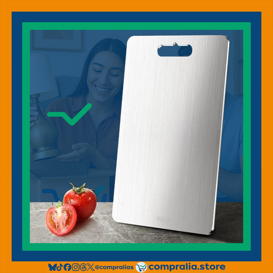 Tabla de Corte en Acero Inoxidable de Grado Alimenticio | Ultra Resistente, Higiénica y Fácil de Limpiar | Con Manija para Colgar